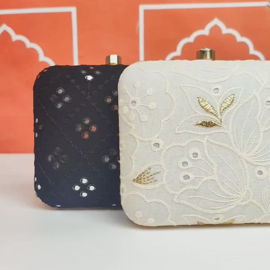 This clutch is a perfect fusion of traditional craftsmanship and modern design. The pastel embroidery adds a touch of vintage charm, while the structured box shape keeps it trendy and contemporary. Whether you’re dressing up for a cocktail evening or an ethnic celebration, this clutch will instantly elevate your outfit.